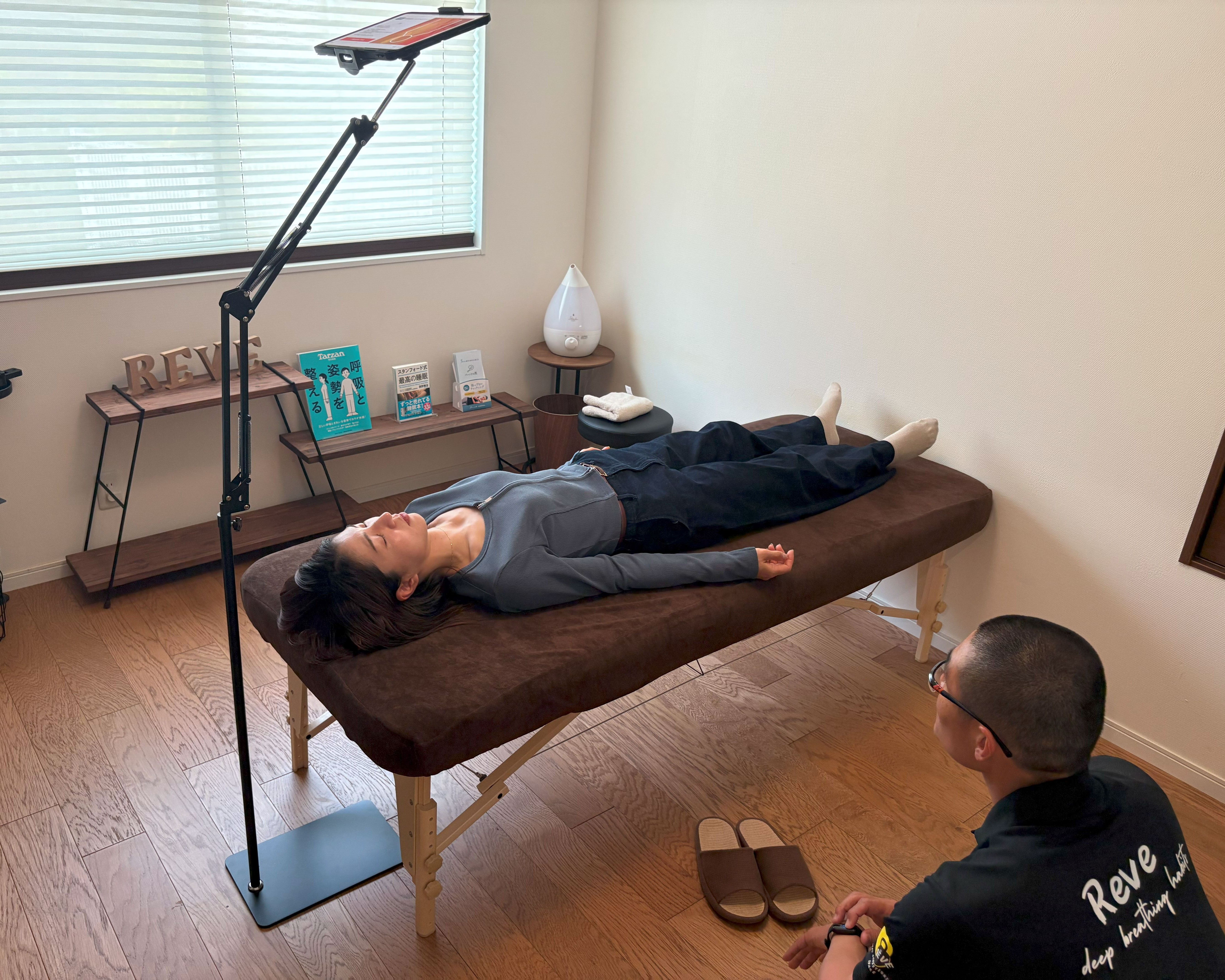 自律神経が乱れると浅い呼吸(隠れ酸欠)が定着しやすくなり、脳が休息モードに切り替わりにくくなります。そうすると、身体も緊張やストレスで姿勢が崩れ、疲れが取れずに、たまっていく一方なのです。レーヴでは、AIで身体の状態を可視化し、20年の技術で筋肉を揉むだけでは届かない、身体の「根源」からコンディションを整えます。